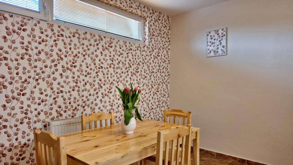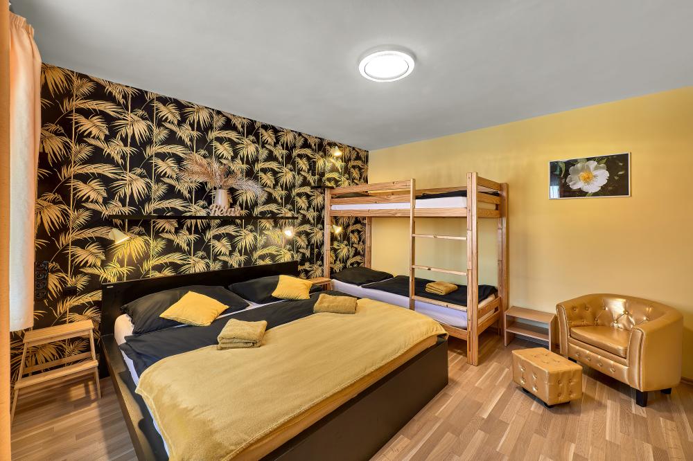 此公寓带有吃饭的地方,厨房和卧室。它带有一张大床(200cm x 200cm),中号床(160cm x 200cm),以及儿童床(80cm x 195cm)。顾客可在卧室里使用电视及DVD播放机。此公寓可以住2到4个人,外加一个孩子。